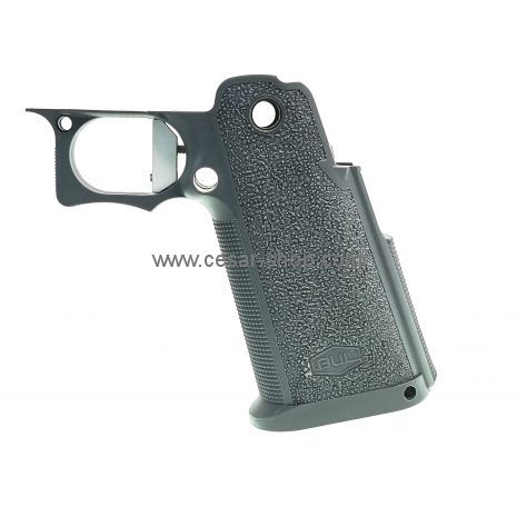 The trigger features a replaceable aluminum insert, which reduces the mass of the moving parts and allows for faster reset. Precision CNC machining of the inserts ensures a clean fingertip contact and consistent feel with every pull. The interchangeable insert system allows customization of ergonomics, trigger reach, and pull feel according to the user’s preferences. Both inserts are included in the set, allowing immediate customization.