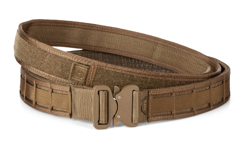 Slabo oblikovani notranji/zunanji pasovi so neudobni, obsežni, težko jih je nadeti/sleči in odpovejo v najslabšem možnem trenutku. Imate pomembnejše stvari za skrbeti, zato se opremite z našim 1,75" širokim bojnim pasom Maverick Battle Belt. Zasnovan kot sistem notranjih/zunanjih pasov, ima pas ergonomsko krivuljo za maksimalno udobje in stabilnost. Notranji najlonski pas zagotavlja podporo in prileganje, medtem ko zunanji pas tesno pritrdi z zanko. Trdnost je prednostna naloga št. 1 za bojni pas, zato smo zunanji pas izdelali z našim lastniškim laminatom visoke trdnosti TAC-LAM™ na vrhu dvojnega najlonskega traku. Podloga s kavljem in zaponka Austri Alpin COBRA® omogočata hitro pritrditev in odstranitev brez žrtvovanja varnosti. Da bi zagotovili enostavno namestitev vaše službene opreme, ima bojni pas Maverick Battle Belt zgornji in spodnji dostop za tkanje poleg centriranega lasersko izrezanega pilula, ki najbolje deluje s 5.11 Flex Pouches.